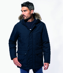 65% polyester/35% cotton canvas with PU coating. Polyester padding and lining.Contrast lined padded hood with detachable faux fur trim.Full length zip with inner zip guard and studded storm flap.Two chest pockets with stud closure.Inner tear release pocket.Adjustable drawcord waist.Two front pockets with stud closure.Ribbed storm cuffs.Zip access for decoration.